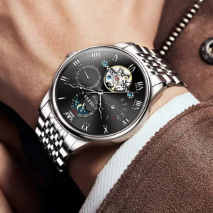 SALE Waterproof Hollow OLEVS New Fashion Men’s Steampunk Tourbillon Mechanical Watch Stainless Steel Automatic Watches Mens