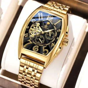 Gold Case Big Square Dial Automatic Watch Men Tourbillon Mechanical Wristwatch Stainless Steel Band Male Clock Relogio Masculino