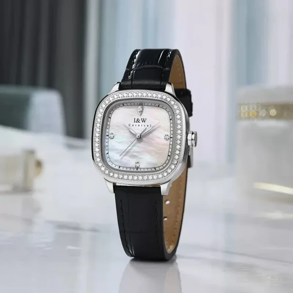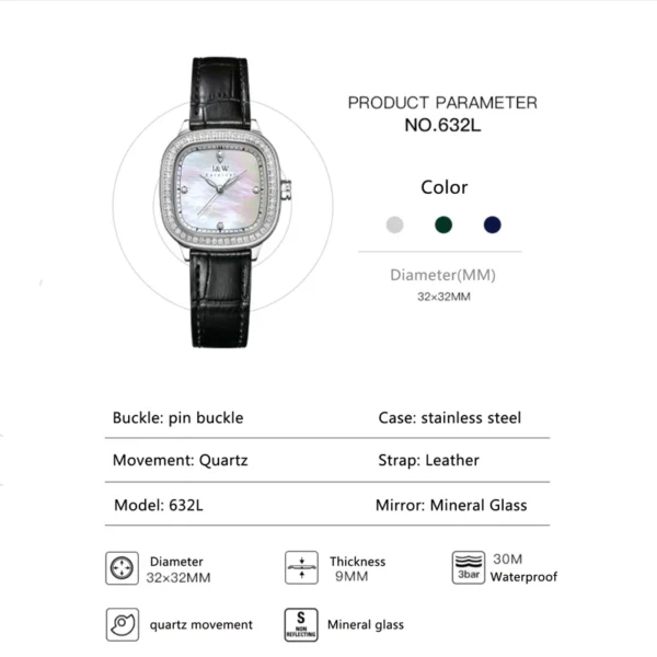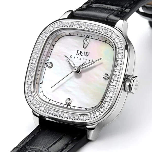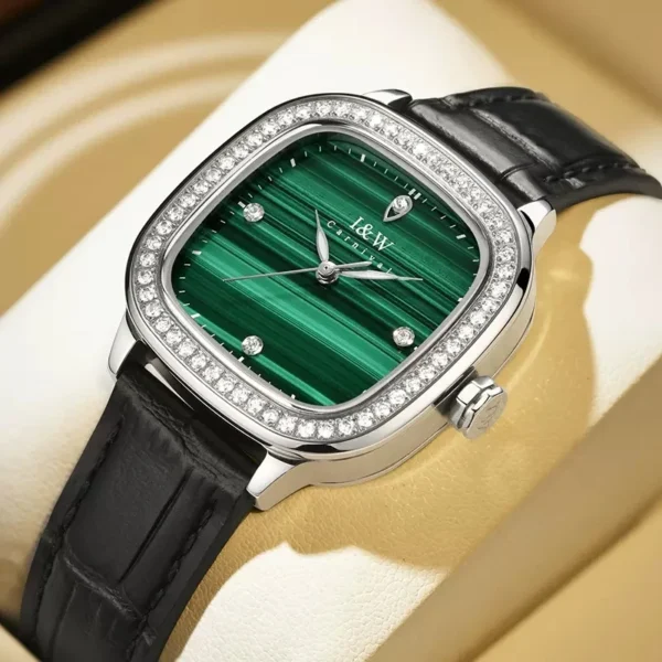The Diamond Women Watch Carnival High-End Series IW Brand Luxury Fashion Square Green Dial Quartz Watch is powered by a reliable quartz movement, ensuring accurate timekeeping. This watch is also water-resistant up to 3Bar, making it suitable for everyday wear and even light water activities.
