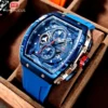 Sport Chronograph Quartz Watch for Men Fashion MINI FOCUS Blue Silicone Strap Tonneau Dial Wristwatch with Date 3atm Waterproof